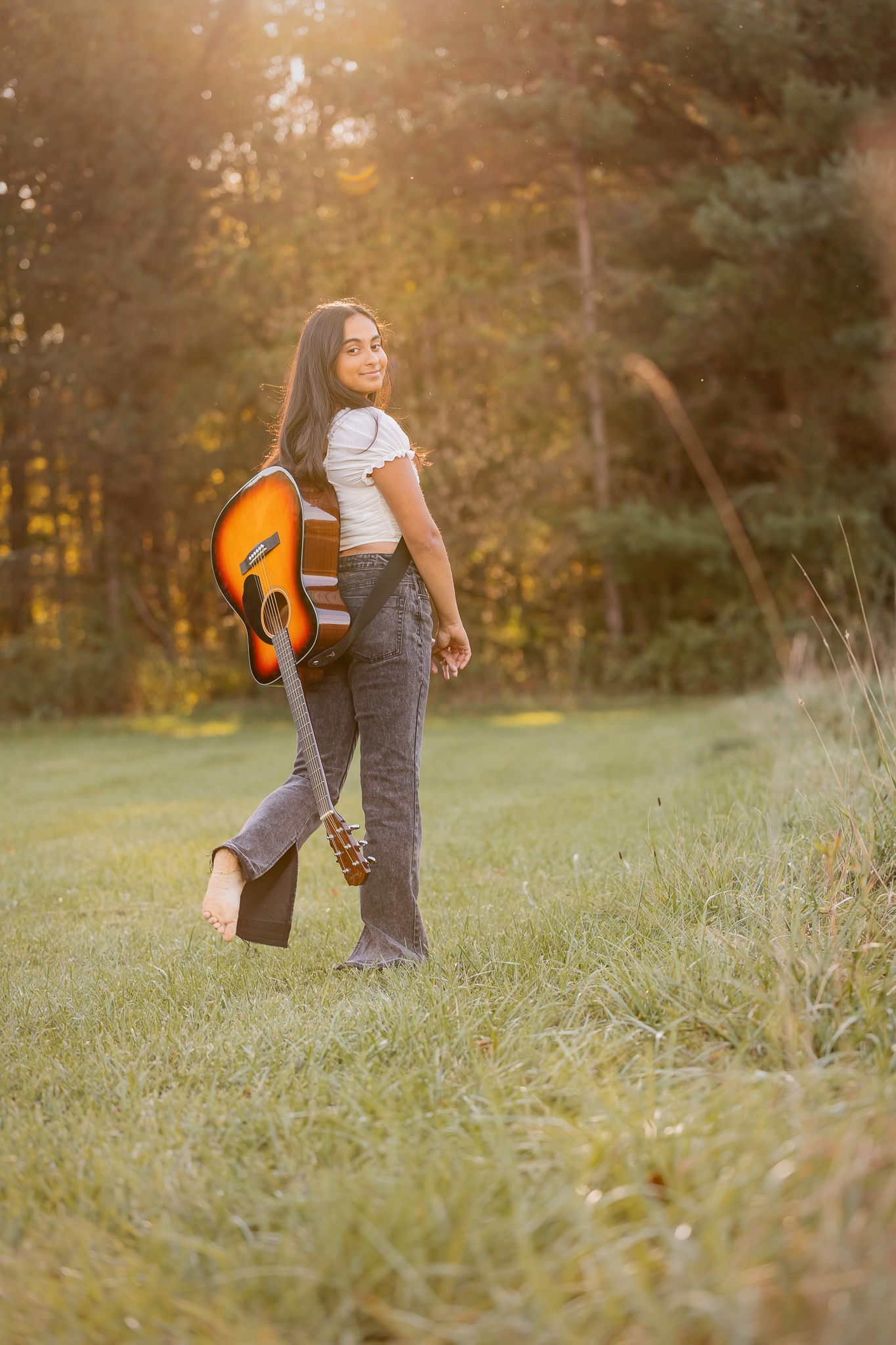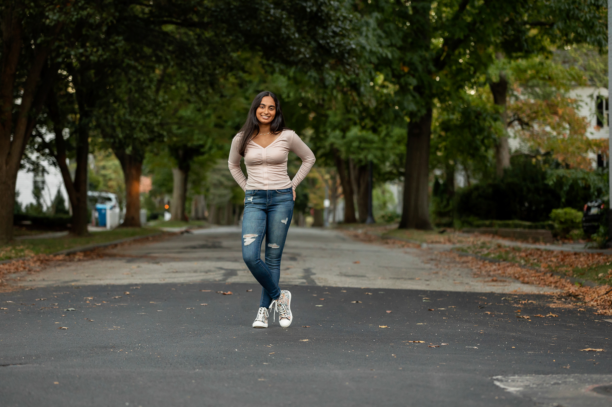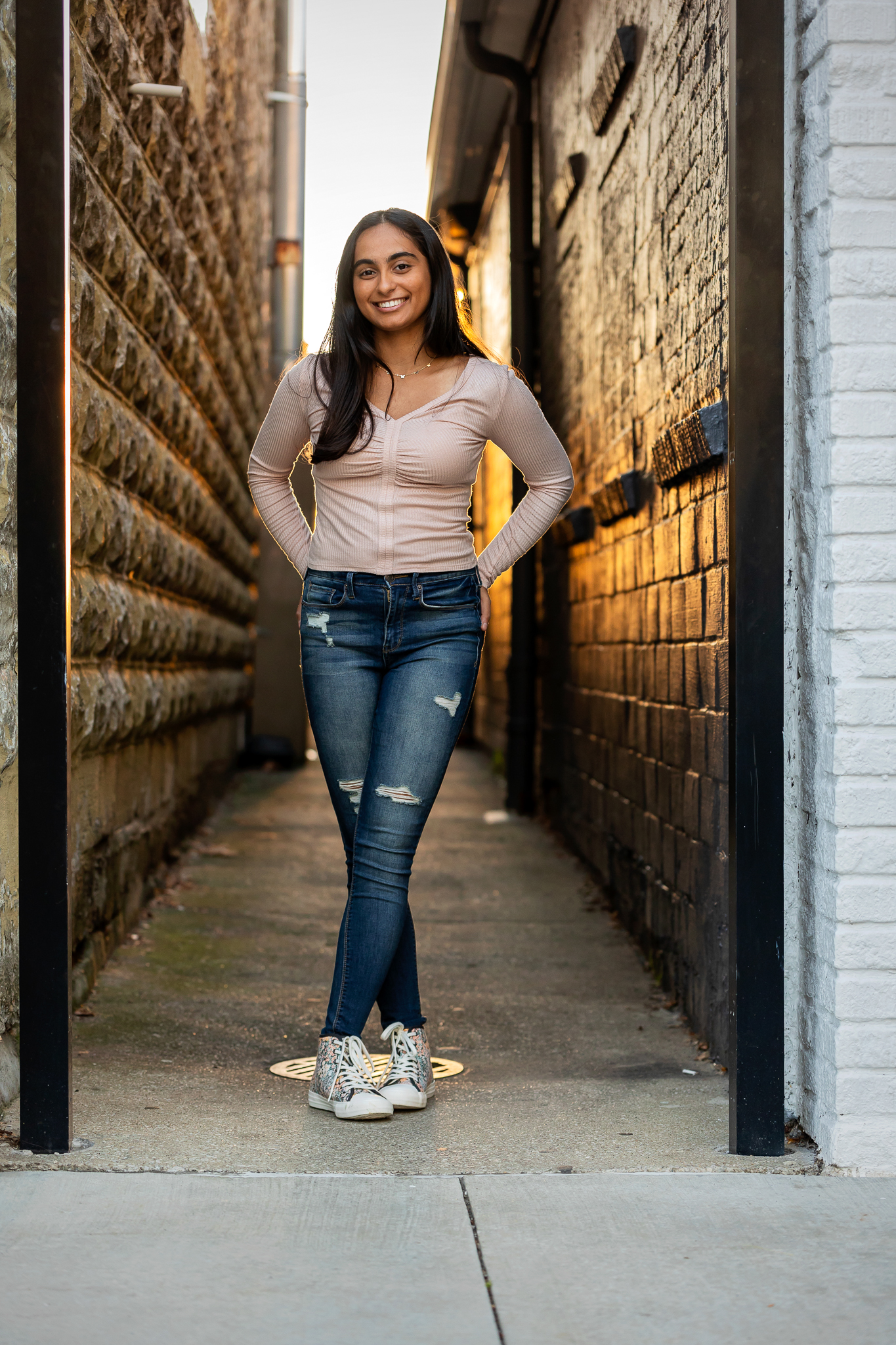 I also have several location suggestions depending on what you want. For this session, Anjali, a Hathaway Brown Senior, wanted a mix of both nature and urban. We got so much variety at The Cleveland Metroparks, with the bridge, creek and golden field. I felt like I was in a music video capturing Anjali strum sweet sounds on her guitar. It was so much fun! Then we headed to downtown Hudson to get some photos with an urban vibe. I’m always on the lookout for cool locations, doorways, stairwells and good light! You’d be surprised at the places I find that you may have seen before, but never really noticed.