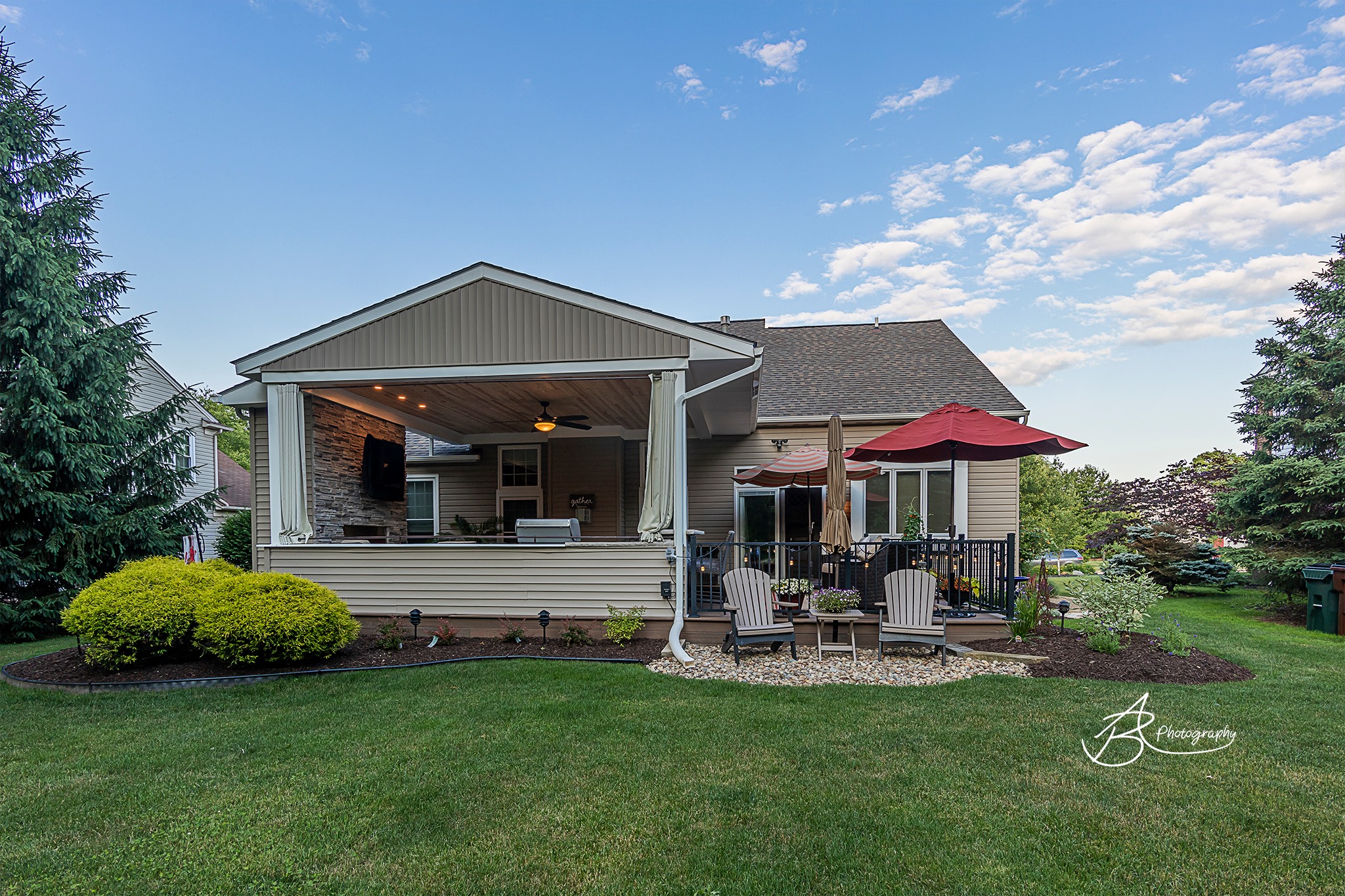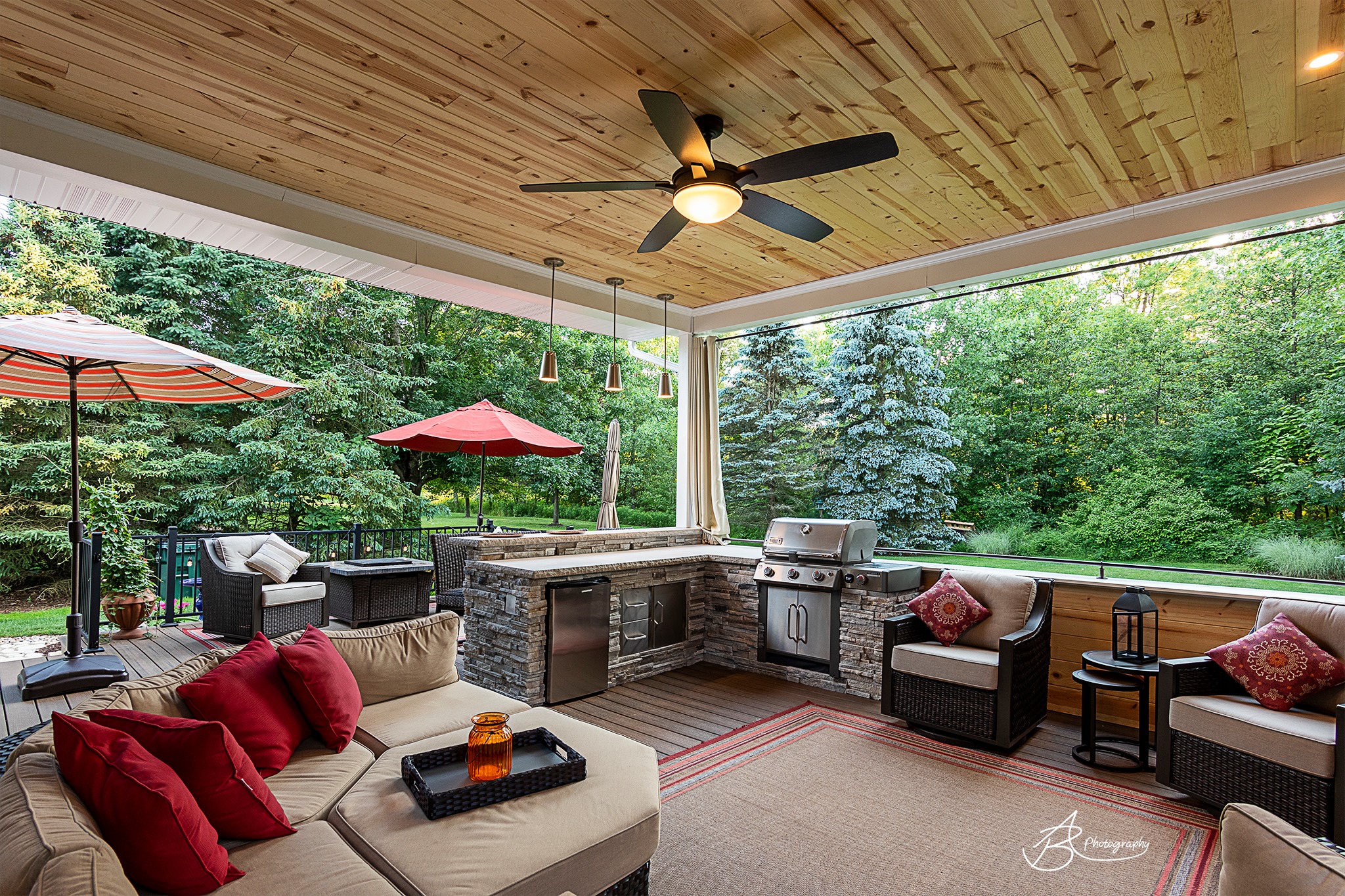 Wow! Look at this gorgeous outdoor living space by A Perfect Coverage! This is definitely a huge design trend and lets you live outside 3 seasons a year even in the rain! These homeowners are loving their new space!