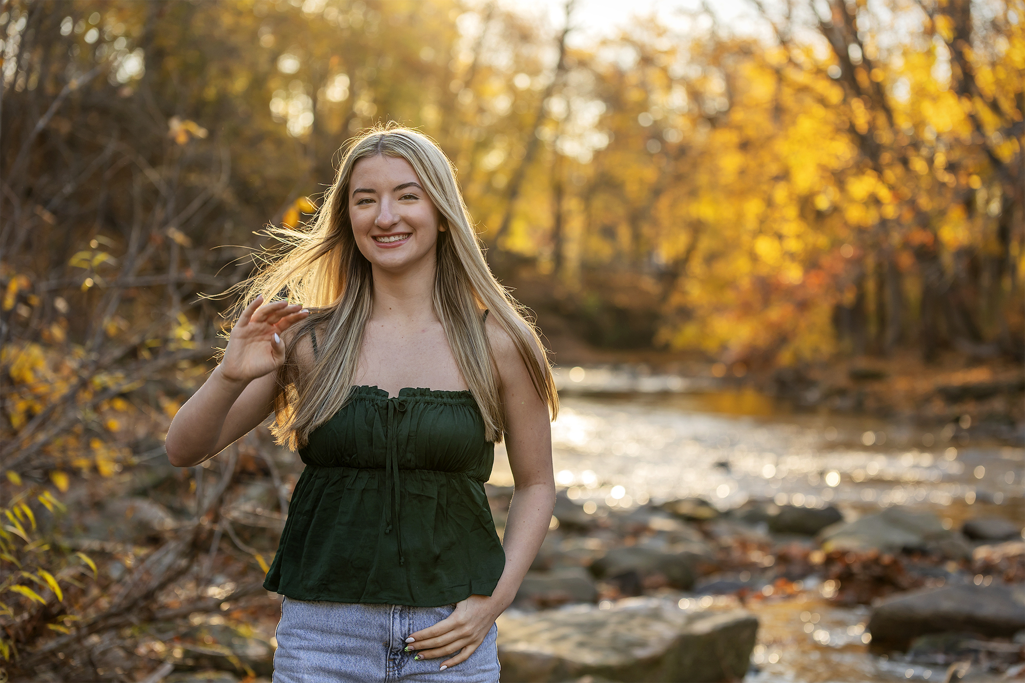 You might not think of Chagrin Falls as an urban backdrop, but there are many areas off the beaten path that give edgy urban vibes. Brick walls, doorways and metal stair wells are some of my favorite places. Even just walking down the sidewalk on the main road turns out great! There is also greenery and flowers depending on the time of year. And don’t forget about the Falls. Beware there are kind of steep stairs to get down to the falls and then rocky slippery terrain once down at the falls but if you’re up for the challenge, it makes for some cool pics. Nearby Frohring Madows is a great option if you are doing a 90 minute Deluxe Senior Session that includes 2 nearby locations and 3 outfits. Then you can combine the urban backdrop of Chagrin Falls and the meadows.